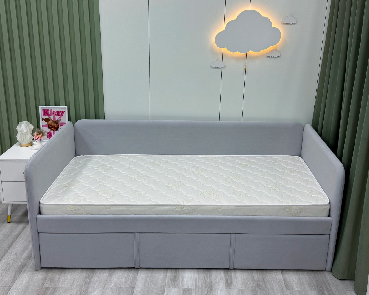 Трикотаж «Teddy» — это невероятно мягкая и уютная ткань с нежной, слегка пушистой поверхностью, напоминающей плюшевого мишку. Она создана специально для детских матрасов, чтобы каждый сон малыша был максимально комфортным и тёплым. Благодаря своей структуре трикотаж «Teddy» прекрасно сохраняет тепло, оставаясь при этом дышащим материалом, который поддерживает оптимальный микроклимат. Ткань гипоаллергенна, не раздражает нежную кожу ребёнка и устойчива к истиранию, сохраняя свою мягкость и привлекательный вид на долгие годы.